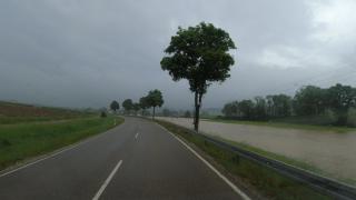 Nachteil bei diesen kleinen Straßen in Verbindung mit anhaltendem Starkregen ist jedoch, dass die Wahrscheinlichkeit von Hochwasser gestoppt zu werden wesentlich höher ist als auf Autobahnen. So hat es auch mich getroffen. Ein paar Kilometer vor Nürnberg stoppt mich die Feuerwehr. Die Straße steht unter Wasser, es geht nicht weiter. Es bleibt mir nicht anderes übrig als ein Ganzes Stück zurück zu fahren und in einem großen Bogen doch auf die wenig geliebte Autobahn zu fahren. Immerhin ist kaum Verkehr und ich passiere Nürnberg ohne Stau.