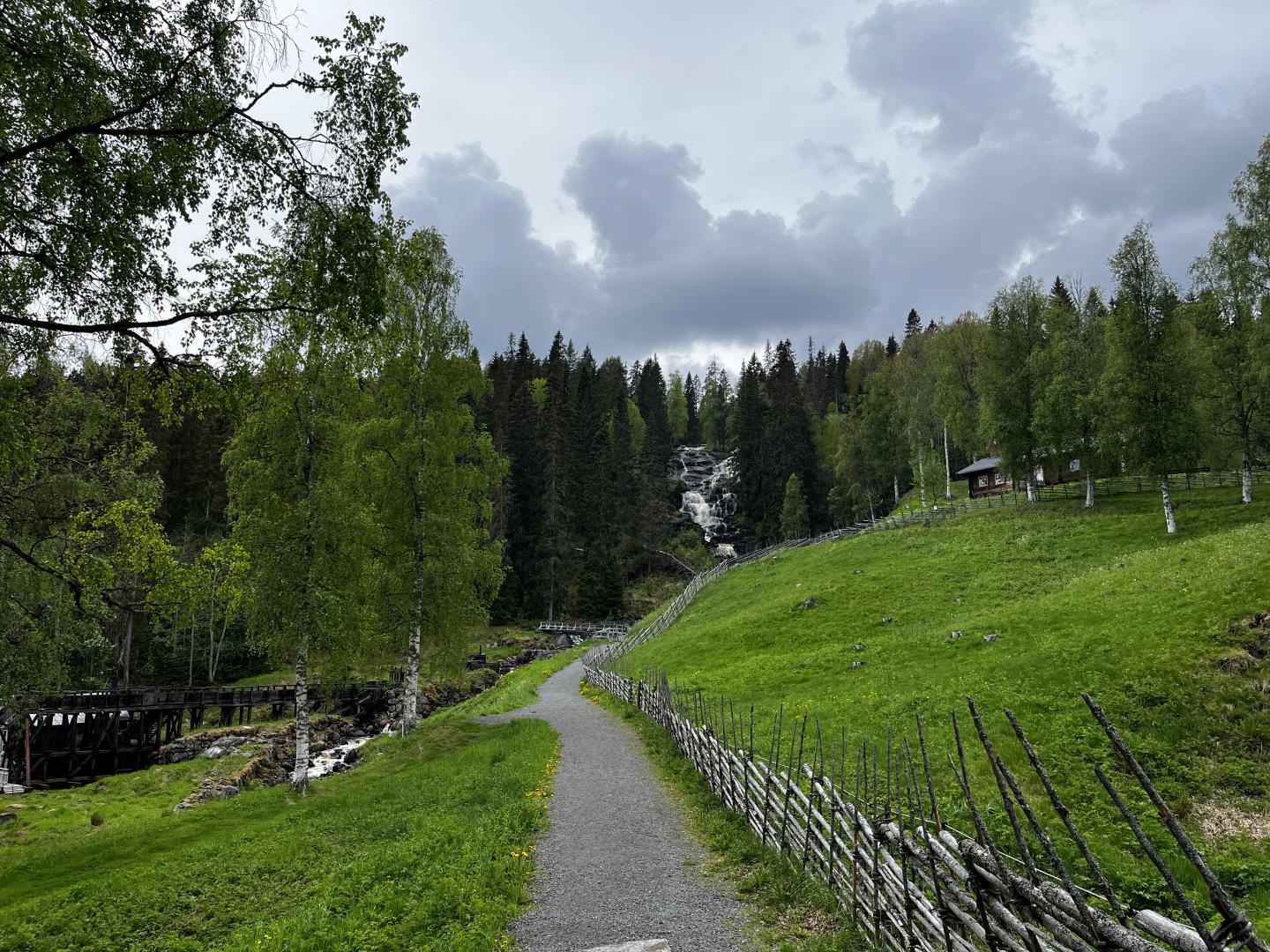 Wie ich erst hier erfahre gehört der Wasserfall mit einer Fallhöhe von 90m zu den höchsten Wasserfällen Schwedens. In der Vergangenheit wurde die Kraft des Wassers von einer Eisenhütte genutzt, deren Überreste sich noch heute unterhalb des Wasserfalls befinden.