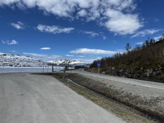 Immer öfter tauchen Schneefelder entlang der Straße auf und auf den Seen entlang der herrlichen Strecke treiben immer öfter Eisschollen. Der Winter hat hier oben noch nicht lange den Rückzug angetreten, trotzdem oder gerade deswegen ist diese Strecke zusammen mit dem herrlichen Wetter an diesem Tag eine absolute Traumroute.