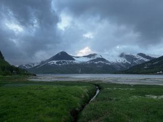3000km bin ich nun bereits gefahren, habe den Polarkreis überquert und dann dass, 2 Tage regnet es ohne Pause. Und mehr noch, in den Bergen mischen sich auch immer wieder Schneeflocken unter den Regen. Zusammen mit dem eisigen Wind und Temperaturen, die es nur mit Mühe noch über den Gefrierpunkt schaffen, eine recht unangenehme Angelegenheit.