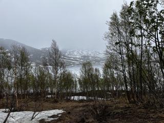 Zurück an meinem Camper setze ich meinen Weg in Richtung Norden fort. Regen und Schnee nehmen weiter zu als ich durch die herrliche Landschaft fahre. Vorbei an Birken in sanftem Frühlingsgrün, die teilweise noch im Tiefschnee des vergangenen Winters stehen.