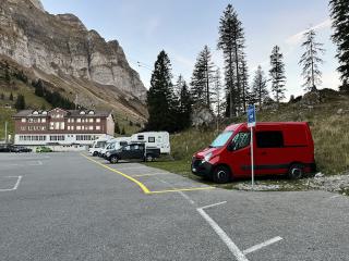 Nachdem ich hier oben einige Zeit verbracht habe, geht es weiter. Weiter zu meinem eigentlichen Ziel dem Säntis, den ich gegen Abend erreiche. An der Talstation gibt es einige offiziell ausgeschilderte Wohnmobilstellplätze, für die aber ein stolzer Preis von 20 CHF pro Nacht fällig werden. Strom oder eine Entsorgungsstation sucht man hier trotz des Preises vergeblich. Trotzdem beschliesse ich hier zu bleiben und am nächsten morgen mit der Seilbahn auf den Berg zu fahren.