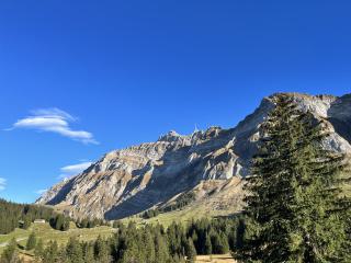 Nachdem mich die Seilbahn wieder sicher ins Tal gebracht hat, entschliesse ich mich noch dazu einen der Rundwanderwege zu absolvieren die hier an der Talstation starten. Ich entscheide mich für den kurzen mit 60min angegeben Rundwanderweg der mich vorbei an kleinen Almhütten und durch den Wald zurück an meinen Ausgangspunkt leitet und dabei immer wieder einen schönen Blick auf die beeindruckenden Felswände des Säntis ermöglicht.