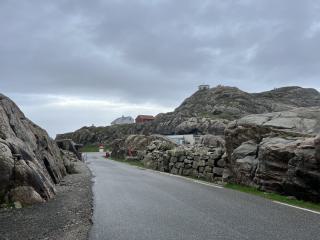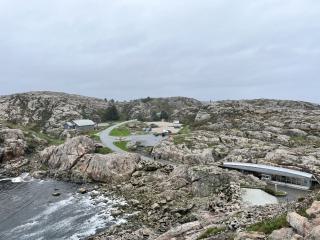 Den Lindesnes Leuchtturm (Lindesnes fyr) erreiche ich schliesslich bei trockenem Wetter. Zu meiner Überraschung gibt es hier nicht nur einen spektakulären Blick auf die Nordsee und einen Leuchtturm zu sehen. Das ganze Gelände ist eine Art Freilichtmuseum. Der ganze Berg ist mit Gängen und Kammern durchlöchert. Neben dem Leuchtturm selbst können zwei weitere Gebäude besichtigt werden und wer das Besucherzentrum genauer erkundet, wird auch noch ein Kino tief im Berg entdecken können.