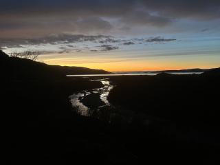 Insgeheim habe ich hier noch auf Polarlichter gehofft. Doch die Wolken sind schneller und es beginnt noch am Abend zu regnen. Auch der nächste Morgen beginnt verregnet und laut Wetterprognose soll sich dies auch den ganzen Tag nicht ändern. Also lasse ich es ruhig angehen. Erst mal ein ausgiebiges Frühstück. Angesichts des Regens muss ein kurzer Rundgang ums Auto als Morgenspaziergang reichen.