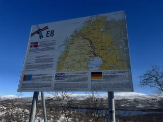 Ich folge der E8 die von Skibotn aus in die Berge führt. Auf dem Weg aus der Stadt versorge ich meinen Camper noch mit frischem Diesel und mich selbst in einem kleinen Supermarkt mit etwas Proviant. Bei bestem Wetter geht es anschliessend in die Berge.