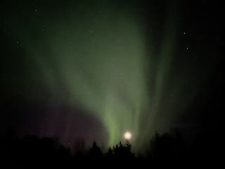 In Karesuando verlasse ich die E8 und überquere die Grenze nach Schweden. Die Landschaft wird flacher und die Wälder dichter. Irgendwo auf einem Wanderparkplatz zwischen Kiruna und Gällivare stelle ich am Abend meinen Camper ab. Mitten im Wald kann ich am Abend ein letztes Mal Polarlichter beobachten. Sie sind zwar sehr schwach, aber immerhin.