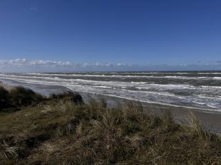 Gegen Mittag zieht es mich an die Küste – endlich ans Meer. Trotz Sonnenscheins drückt der kräftige Küstenwind die Temperaturen auf unter 15 Grad. Eine echte Wohltat. Zu Fuß sind es etwa 15 Minuten bis zum Strand. Der Weg führt mich durch ein fast menschenleeres Feriendorf. Die Urlaubssaison ist hier ganz offensichtlich vorbei.