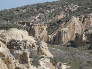 Besonders faszinierend sind die bizarren Felsformationen. Die wohl bekannteste und eindrucksvollste ist der Castil de Tierra – eine markante, turmartige Erosionsformation, die fast wie eine natürliche Skulptur wirkt. Genau hier treffen sich auch die beiden vorgeschlagenen Rundrouten.