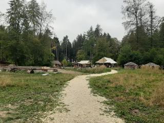 Während eine kleine Holzkirche bereits fertiggestellt ist und besichtigt werden kann, wird an anderer Stelle noch fleißig gebaut. Ein Lagerhaus ist das nächste Großprojekt.