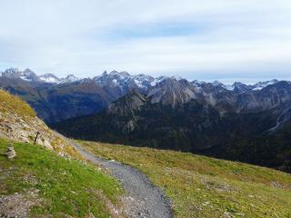Zwar reicht es angesichts der Temperaturen auch hier oben auf knapp über 2000m nicht um die ersten Schritte des bevorstehenden Winters im Schnee zu unternehmen, aber der fantastische Ausblick auf die umliegenden Gipfel entschädigt allemal dafür.