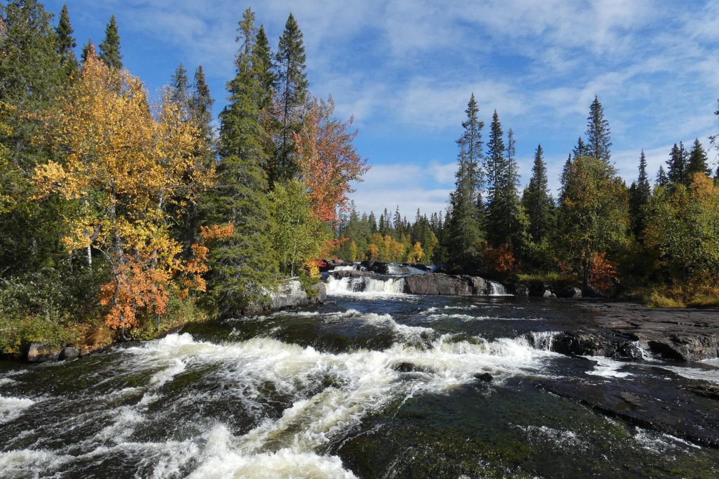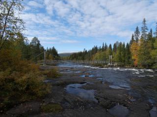 Zugegeben der Wasserfall ist bei weitem nicht so spektakulär wie die die ich in den nächsten Tagen noch zu Gesicht bekommen werde, aber in Kombination mit der neu gebauten Hängebrücke und den schon leicht verfärbten Bäumen mehr als nur ganz nett anzuschauen.