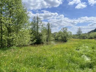 Ebenso spontan wie die Wahl der Himmelsrichtung auf der Autobahnauffahrt folg auch die Entscheidung diese bei Ellwangen wieder zu verlassen. Ich folge einer Landstraße ins Jagsttal, bei sonnigen Wetter geniesse ich hier das frische Frühlingsgrün und das herrliche Wetter. In der Ortschaft Jagstzell finde ich mich im lauf des Nachmittags auf einem Wohnmobilstellplatz wieder. Zwar liegt dieser direkt neben den Gleisen, ein Zug kommt aber an diesem Tag nicht, so bleibt es ruhig. Eigentlich sollte es nur ein kurzer Erkundungsgang werden, aber ein schöner Weg entlang der Jagst und das herrliche Wetter lassen es dann doch zu einer kleinen Wanderung werden.