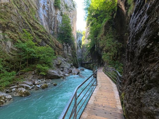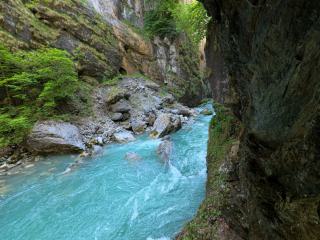 Durch den größten Teil der Schlucht führen zwei Wege, einer führt direkt entlang der Felsen und bietet teilweise spektakuläre Blicke auf den Fluss mit seiner beeindruckenden Färbung und die hohen, nahezu senkrechten Felswände auf beiden Seiten der Schlucht. Der Zweite, führt durch einen Stollen im Fels.