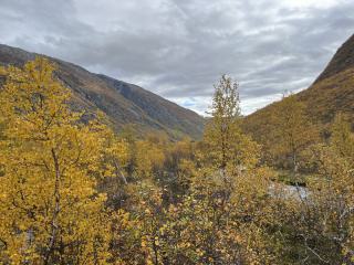 Es ist Anfang Oktober und die gesamte Umgebung leuchtet in beeindruckenden Herbstfarben. Besonders die Birken mit ihrem intensiven Gelb stechen hervor. Aber auch Islandmoos und Gräser sorgen für eine faszinierende Farbpalette.