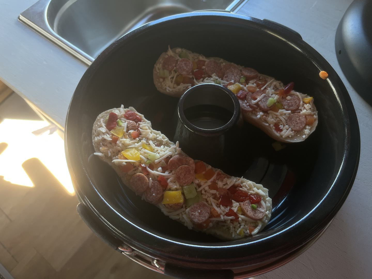 Ich verwende den Aufsatz in erster Linie um Brötchen oder Pizzabaguettes aufzubacken. Zu beachten ist dabei das die Hitze in erster Linie von unten kommt. Daher solle man die Unterseite der Backware etwas genauer im Auge behalten. Bei mir hat sich eine ON-/Offstrategie bewährt. Nachdem der Backofen eine gewisse Temperatur erreicht hat, drehe ich das Gas zurück bzw. schalte kurzzeitig komplett ab. Am Anfang braucht dies etwas Übung, aber man entwickelt schnell ein Gefühl dafür. Damit wird die Backware unten nicht Schwarz und oben trotzdem durch. Brötchen kann man natürlich auch einfach drehen.