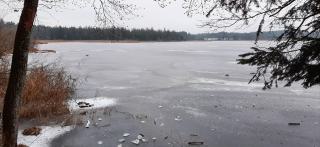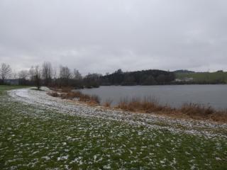 Mein Arbeitsjahr beginnt schließlich am 4. Januar. Allerdings schaffe ich es noch bei Tageslicht aus dem Büro zu kommen und kann so auf dem Heimweg noch einen Zwischenstopp am Holzmühleweiher bei Immenried einlegen. Der Holzmühleweiher ist einer von mehren Seen, zwischen denen es sich wunderbar wandern lässt. All zu ausgedehnt ist meine Wanderung an diesem Tag allerdings nicht, nach der Arbeit bleibt einfach zu wenig Zeit bevor es dunkel wird.