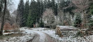Eher unspektakulär ist meine nächste Tour in den nahegelengen leicht angezuckerten Wald. Ein kleiner Nachmittagsspaziergang durch die Stille des Waldes. Hier gibt es nicht viel zu entdecken, einfach durchatmen und den Gedanken freien Lauf lassen.