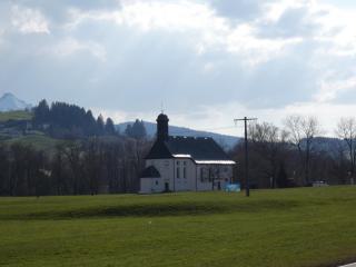 Ausgangspunkt meiner Wanderung ist die St. Sebastianskapelle bei Wertach. Von hier aus führt mich mein Weg ein kleines Stück an einer Hauptstraße entlang, bevor ich dem Fluss Wertach in Richtung des Grüntensees durch ein Naturschutzgebiet folge.