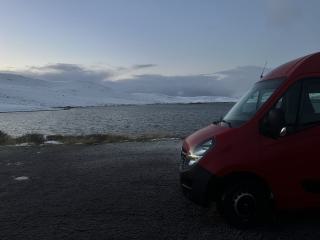 Wie weit ich an diesem Tag gefahren bin, kann ich nicht sagen. Es ist auch nicht wichtig, aber nach ein paar Stunden am Steuer wird es Zeit für ein Nachtlager. Einen Campingplatz habe ich schon länger nicht gesehen, also muss wohl oder übel mal wieder ein Parkplatz her halten. Inzwischen bin ich in den Bergen angelangt. Aus dem Regen wurde hier oben Schnee. Die Temperaturen sind inzwischen unter den Gefrierpunkt gesunken und der Schneematsch auf der Straße beginnt langsam zu vereisen.