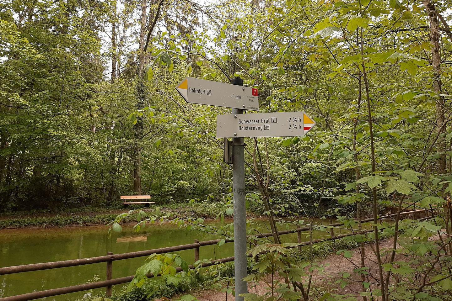 So schön dieser Ort auch ist, es zieht mich irgendwann weiter. Einen richtigen Plan wohin es als nächstes gehen soll habe ich nicht. Nur zurück will ich jetzt noch nicht. Also geht es erst mal weiter. Ich folge der Beschilderung zum Schwarzen Grad, dem mit 1.118m den höchsten Punkt Württembergs. Wie ich allerdings bereits durch ein Schild am Wanderparkplatz erfahren habe, ist der dortige Aussichtsturm derzeit aufgrund der Corona-Krise geschlossen. Ein guter Grund den Besuch auf einen späteren Zeitpunkt zu verschieben. Ich verlasse also den angedachten Weg und biege in den Eisenbacher Tobel in Richtung Kreuzthal-Eisenbach ab.